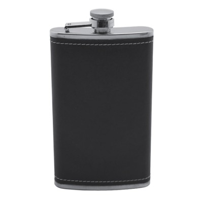 Set de licorera que incluye: Licorera de bolsillo de acero inoxidable con tapa de rosca y detalle en curpiel con CAP. 8 OZ, un vaso de vidrio para whisky, pinzas de acero inoxidable para hielos, estuche con 4 hielos metálicos y 2 vasos de acero inoxidable para shots. Incluye caja de regalo. Medidas: 27 x 21 x 8.5 cm