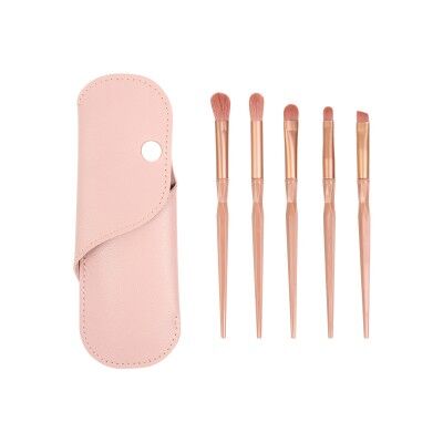 Set de brochas para maquillaje con estuche, fabricadas en poliestireno (PS) con cerdas fabricadas en nailon y férula de aluminio . Incluye 5 brochas y estuche fabricado en cuero sintético (PU). . Medidas: Estuche: 18x6 cm.