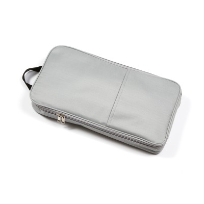 Set de BBQ en estuche con cierre y asa, incluye indumentaria, espátulas, pinzas, tijeras, y destapador.