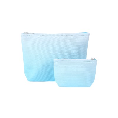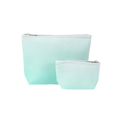 Set fabricado en poliéster, conformado por bolsa principal sin asas y bolsillo con función de monedero, con diseño de color degradado y cierre metálico. Medidas: Bolsa grande: 22x17x6 cm. | Bolsillo: 14x10x5 cm.