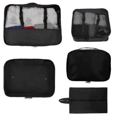 Set de 5 bolsas organizadoras de equipaje, que incluye: 4 bolsas de diferentes tamaños con asas y 1 zapatera. Medidas: 30.5 alto x 39 ancho
