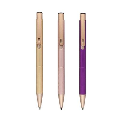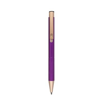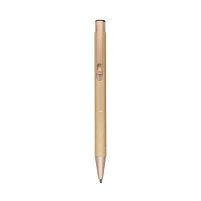 Bolígrafo de aluminio con detalles en el clip y grip, con mecanismo de click. Medidas: 13.5 alto x 1 ancho