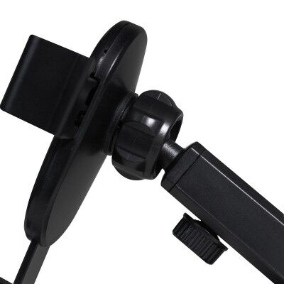 Soporte plegable con ventosa de gel que se adhiere firmemente a tableros y parabrisas. Altura e inclinación ajustable. Incluye caja individual. Medidas: 10 x 11 cm (Plegado)