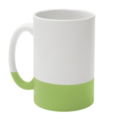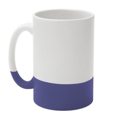 Taza blanca mate de arcilla para sublimación, con base y media asa de color. CAP. 325 ml. (11 OZ). Venta en múltiplos de 12. Medidas: Ø 8.3 x 9.7 cm