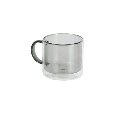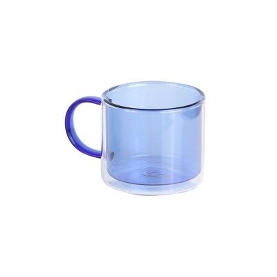 Taza de doble pared en color translucido fabricada en borosilicato (vidrio). Capacidad 260 ml. Medidas: 7.5x12 cm.