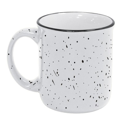 Taza de cerámica de boca abierta con filo negro. Exterior en color, tipo peltre. Interior en color blanco liso. CAP. 400 ml (14 OZ.) Venta en múltiplos de 12. Medidas: Ø 10 x 9 cm