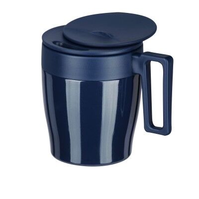 Doble pared cerrado al vacío. Pared interna y externa de acero inoxidable. Incluye tapa de plástico tipo push con una sobre tapa deslizable, asa cuadrada que facilita el agarre, base antiderrapante y caja individual. Medidas: 9.4 x 13.2 cm