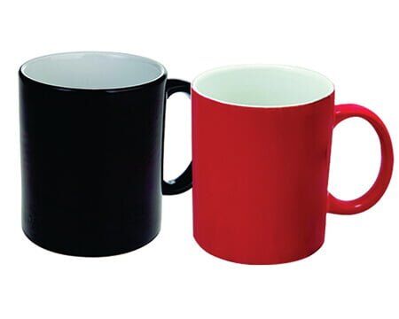 Tarro mágico para sublimar. El diseño aparece al servir agua caliente. CAP. 325 ml. (11 OZ). Venta en múltiplos de 12. Medidas: Ø 8.2 x 9.5 cm