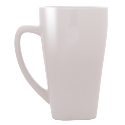 Taza con base cuadrada exterior blanco brillante, interior a color brillante. CAP. 12 OZ. Venta en múltiplos de 12. Medidas: Ø 9.1 x 12 cm