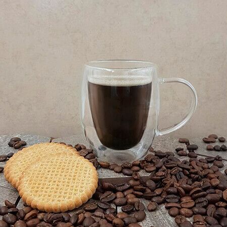 Taza de vidrio doble pared. Medidas: 9 alto x 6.5 ancho