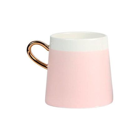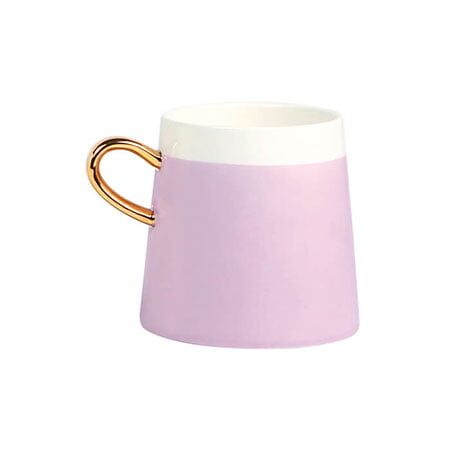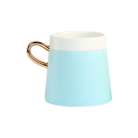 Taza de cerámica bi-tono con asa dorada. Capacidad de 360 ml. Incluye caja de cartón individual. Medidas: 9.2x9.2 cm.