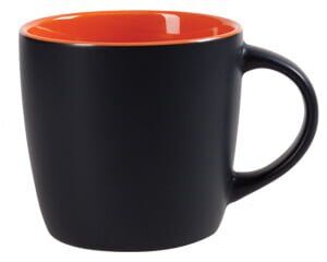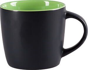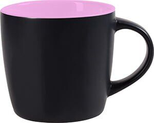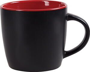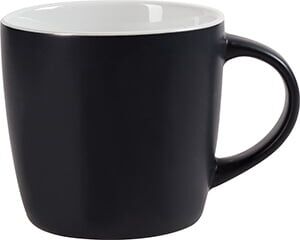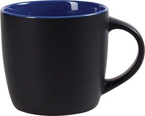Tarro de cerámica con recubrimiento mate en color negro, interior brillante en color. CAP. 10 OZ. Venta en múltiplos de 12. Medidas: Ø 9 x 8.5 cm
