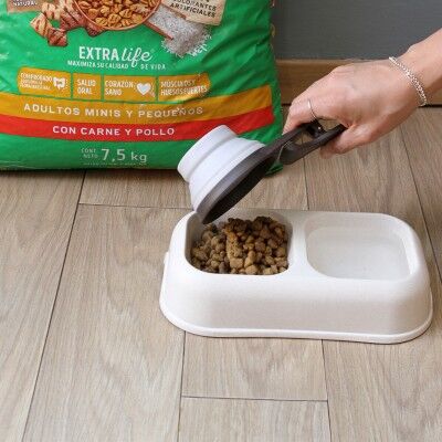 Tazón retráctil para alimento de mascota fabricado en plástico con función de cerrado para bolsa de alimento, capacidad de 230 ml.
