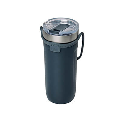 Doble pared. Cerrado al vacío. Pared interna y externa de acero inoxidable. Tapa de plástico con válvula de seguridad y asa de silicón removible. Terminado rugoso. Mantiene temperatura caliente 6 hrs y temperatura fría 8 hrs aproximadamente. Incluye caja individual. Medidas: 8.5 x 21.5 cm