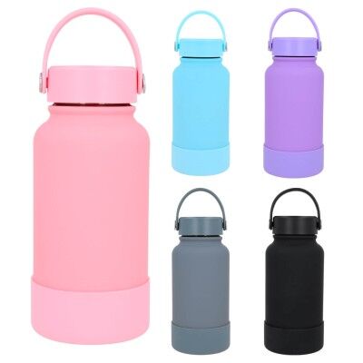Termo con doble pared de acero inoxidable, insulado al vacío, acabado rubber con silicón en la parte inferior y tapa enroscable con asa. Medidas: 20.5 alto x 9.3 ancho