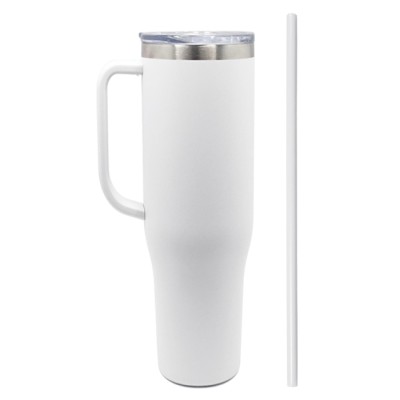 Termo de doble pared de acero inoxidable insulado al alto vacío, con capa interior de cobre, cuenta con una cubierta metálica con acabado de polvo plástico, con asa de plástico. Con duración de 12 hrs. bebidas calientes y 24 hrs. bebidas frías. Incluye tapa transparente de cierre a presión con seguro deslizable y popote. CAP. 40 OZ (1,200 ml). Presentación: caja en color blanco. Medidas: Ø 10 x 25 cm