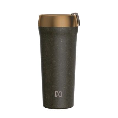 Termo de doble pared, la interna de acero inoxidable y externa de granos de café reciclado, con una duración de 3 hrs bebidas calientes y 5 hrs. bebidas frías. TINOS de NAYAD es biodegradable y apropiado para cualquier tipo de bebida. El estilo de la serie Ethio tiene un diseño ergonómico, con detalle de metal en color bronce en su parte superior. TINOS es libre de BPA, su tapa es a presión con seguro giratorio, previendo derrames. CAP. 414 ml. Presentación: Caja de color. Medidas: Ø 8.9 x 16.8 cm