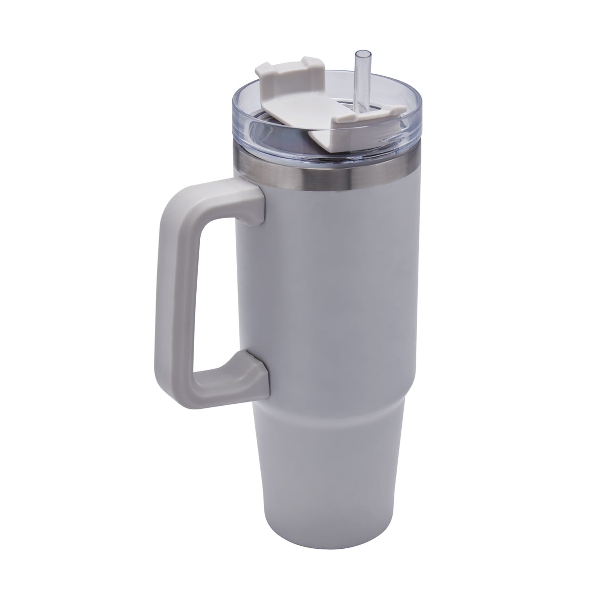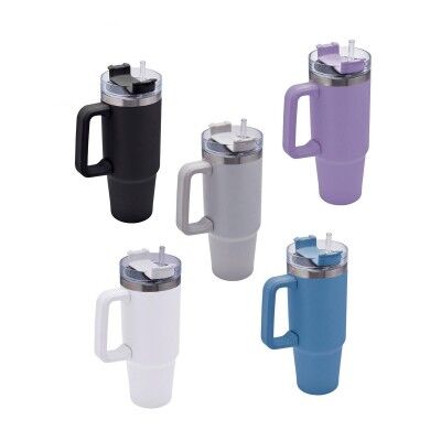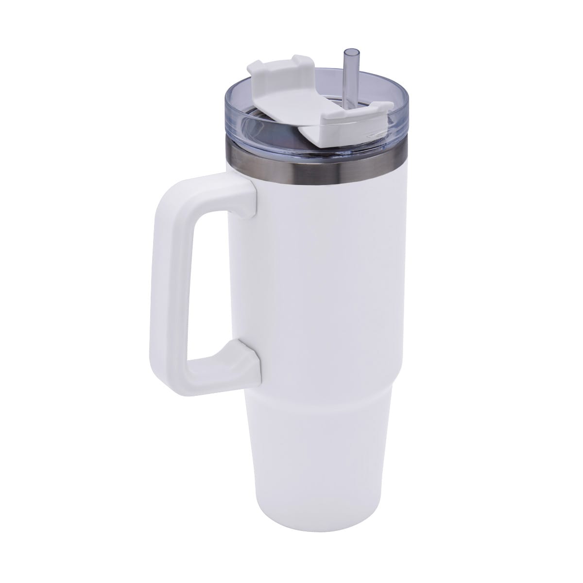 Doble pared. Cerrado al vacío. Pared interna y externa acero inoxidable. Tapa de plástico con cierre de rosca y sobretapa giratoria de 3 posiciones con ranura para popote. Incluye popote y asa de plástico. Mantiene temperatura caliente 6 hrs y temperatura fría 8 hrs aproximadamente. Incluye caja individual. Medidas: 6.7 x 23 cm