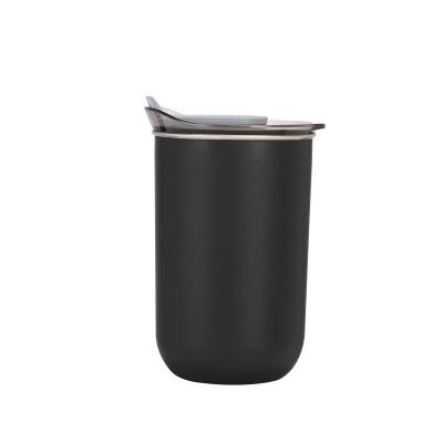 Doble pared. Pared interna de acero inoxidable y externa de plástico. Tapa de plástico con sistema push y sobretapa de silicón movible. Incluye caja individual. Medidas: 8.5 x 13.3 x 8 cm