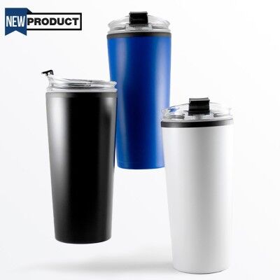 Termo de acero inoxidable y plástico con capacidad de 400 ml. Tapa de rosca.