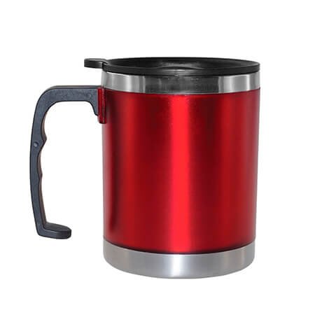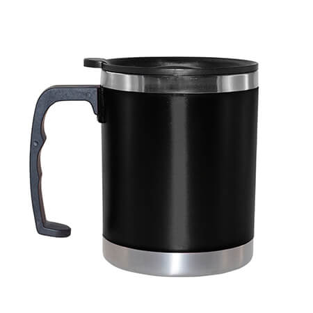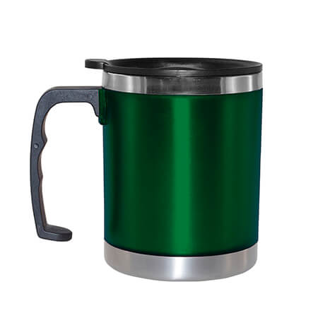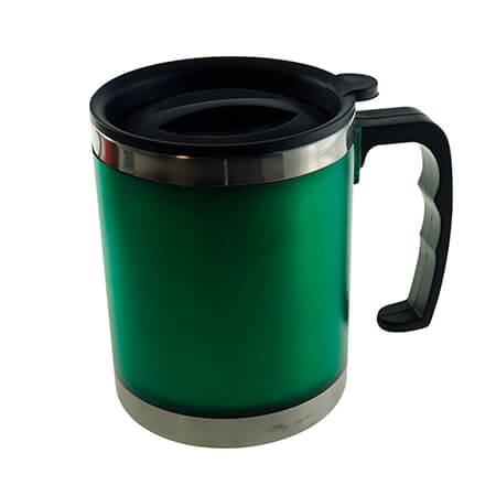 Taza térmica. Interior plástico y acabado frosted, con tapa plástica.