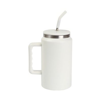 Termo doble pared fabricado en acero inoxidable 304+201. Capacidad de 50 Oz (1,500 ml.). Cuerpo y agarradera de color, con detalle cromado y popote de acero inoxidable. Medidas: 9.5x11x19.5 cm.