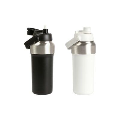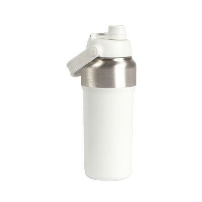 Termo doble pared fabricado en acero inoxidable, con popote interno, detalle plateado y agarradera. Capacidad de 1000 ml.