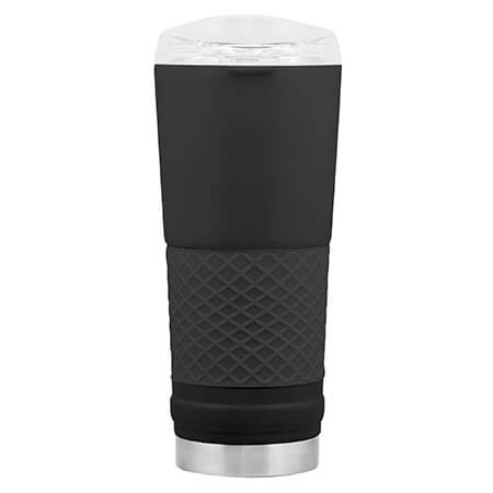 Capacidad 720 ml. Acero inoxidable. Mug metálico. Interior acero 304 y exterior 201. Manga antideslizante de silicona. Tapa plástica a presión con aro de silicona antiderrame y con seguro que permite mantener cerrada la boquilla por donde se bebe. Caja de regalo color negro mate.
