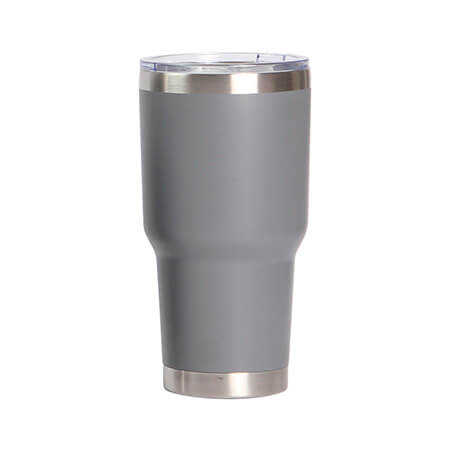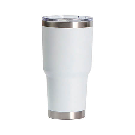Termo de acero inoxidable doble pared acabado mate y detalles plateados en filo y base, con tapa deslizable de plástico transparente. Fabricado en materiales de grado alimenticio, mantiene bebidas frías o calientes por un largo tiempo. No usar en microondas. Capacidad de 850 ml. (29 oz) Incluye caja de cartón individual. Medidas: 20.2x10 cm.