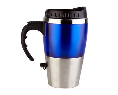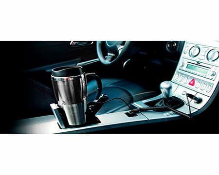 Doble pared. Pared interna acero inoxidable, pared externa plástico. Fuente corriente, adaptador para automóvil y USB, mantiene la temperatura de las bebidas, no calienta. Tapa de plástico con válvula de seguridad. Incluye caja individual. Medidas: 8.7 x 19.9 cm