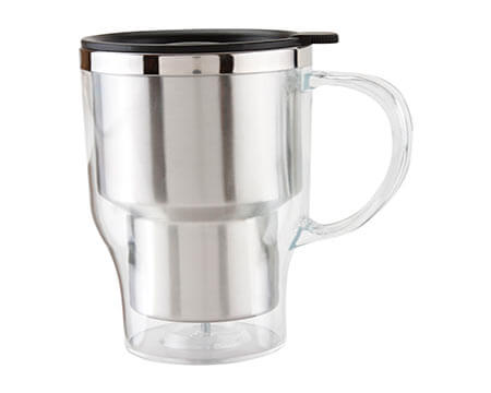 Doble pared. Pared interna acero inoxidable, pared externa plástico. Cubierta translúcida. Incluye caja individual. Medidas: 8.8 x 15.3 cm