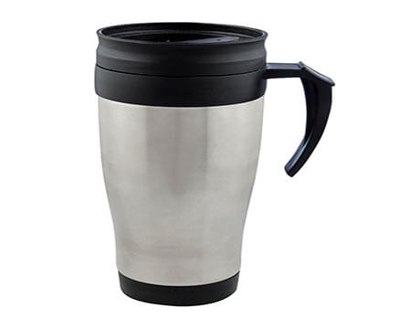 Doble pared. Pared interna plástico, pared externa acero inoxidable. Tapa de plástico con válvula de seguridad. Incluye caja individual. Medidas: 8.5 x 17 cm