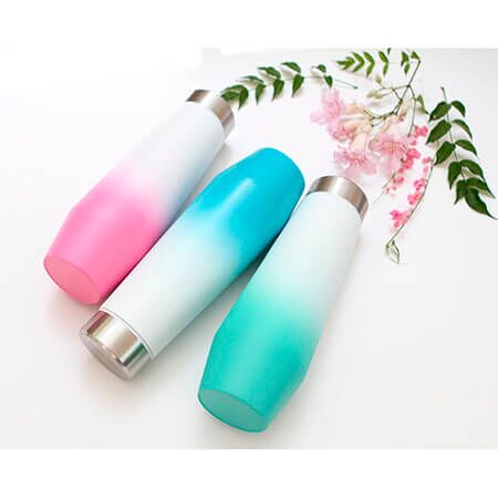 Termo degradado con doble pared de acero inoxidable, tapa metálica de rosca. Fabricado en materiales de grado alimenticio, mantiene bebidas calientes por un largo tiempo, no usar en microondas. Capacidad de 530 ml. Incluye caja de cartón individual. Medidas: 24.5x8.5 cm.