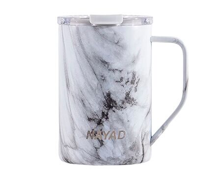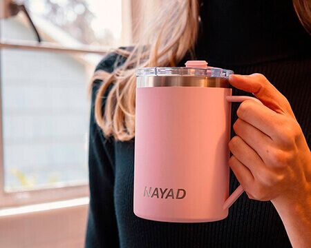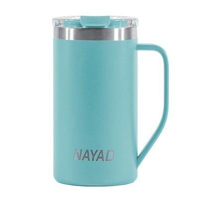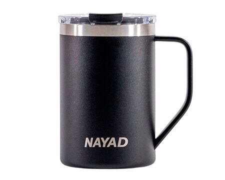 Tarro térmico de doble pared marca NAYAD de acero inoxidable 304 insulado al alto vacío cuenta con capa interior de cobre que permite mantener las bebidas frías por 20 horas y calientes por 10 horas. Cubierta metálica con acabado de polvo plástico, asa ergonómica para un agarre más firme. Incluye tapa de tritan con cierre a presión, detalle metálico en el centro y tapón abatible que permite beber fácilmente sin derrames. CAP. 443 ml. (15 OZ). Presentación: Caja de color. Medidas: Ø 8.5 x 13.4 cm