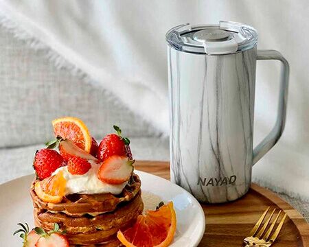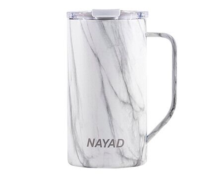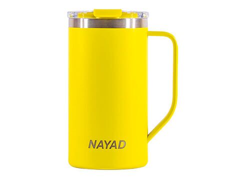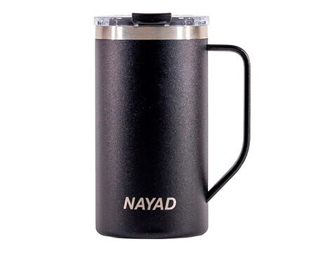Tarro térmico de doble pared marca NAYAD de acero inoxidable 304 insulado al alto vacío cuenta con capa interior de cobre que permite mantener las bebidas frías por 20 horas y calientes por 10 horas. Cubierta metálica con acabado de polvo plástico, asa ergonómica para un agarrado más firme. Incluye tapa de tritán con cierre a presión, detalle metálico en el centro y tapón abatible que permite beber fácilmente sin derrames. CAP. 590 ml. Presentación: Caja de color. Medidas: Ø 8.5 x 16.5 cm