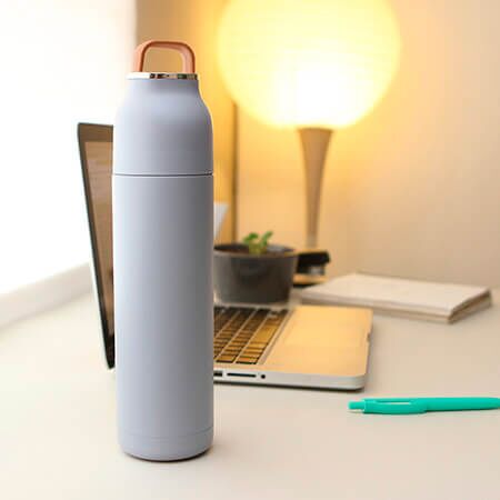 Termo de acero inoxidable doble pared con asa de silicón en color café. Fabricado en materiales de grado alimenticio, mantiene bebidas frías o calientes por un largo tiempo, no usar en microondas. Capacidad de 500 ml. Incluye caja de cartón individual. Medidas: 30x6.5 cm.