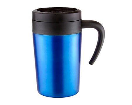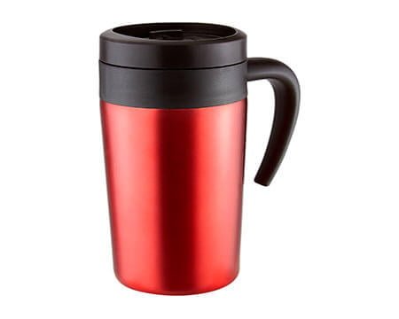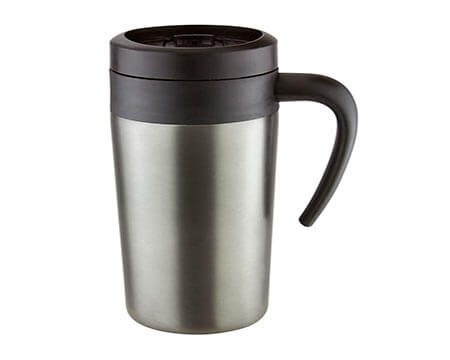 Doble pared. Pared interna plástico, pared externa acero inoxidable. Tapa de plástico con válvula de seguridad. Incluye caja individual. Medidas: 6.5 x 16 cm