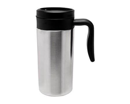 Doble pared. Pared interna plástico, pared externa acero inoxidable. Tapa de plástico con válvula de seguridad. Incluye caja individual. Medidas: 7 x 21 cm
