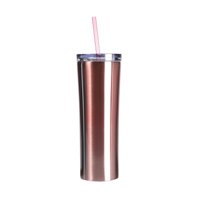 Termo de acero inoxidable doble pared con tapa de plástico transparente y popote, fabricado en materiales de grado alimenticio, mantiene bebidas frías o calientes por un largo tiempo, no usar en microondas. Capacidad 470 ml (16oz). Incluye caja de cartón individual. Medidas: 22x8 cm.