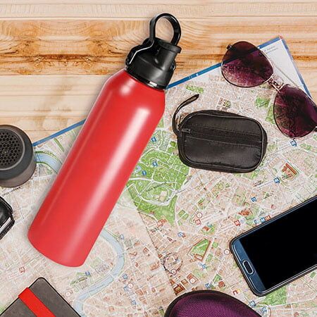 Termo fabricado en acero inoxidable con tapa y agarradera de plástico, fabricado en materiales de grado alimenticio, no usar en microondas. Capacidad 750ml (26oz). Incluye caja de cartón individual. Medidas: 28x7 cm.