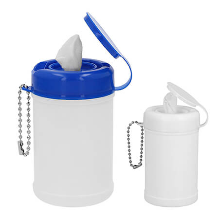 Toallitas humedas en estuche de plástico con tapa dispensadora. Contiene 30 toallitas. Medidas: 8.5 alto x 5 ancho