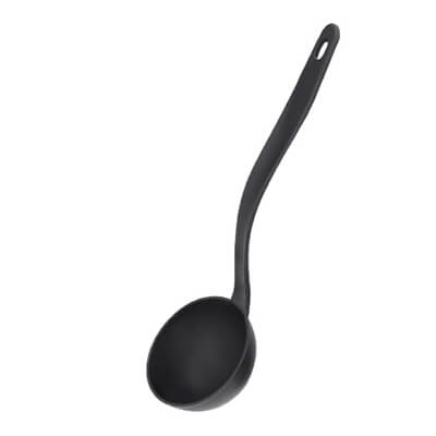 Utensilio de cocina: Cucharón. No daña el antiadherente, fácil de limpiar, no absorbe grasas ni sabores. Medidas: 22.5 alto x 9 ancho