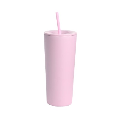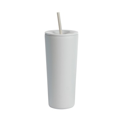 Vaso de acero inoxidable doble pared con tapa de plástico tipo rosca, con popote. Fabricado en materiales de grado alimenticio, mantiene bebidas frías o calientes por un largo tiempo. No usar en microondas. Capacidad 660 ml. Incluye caja de cartón individual. Medidas: 19.8x8.7 cm.