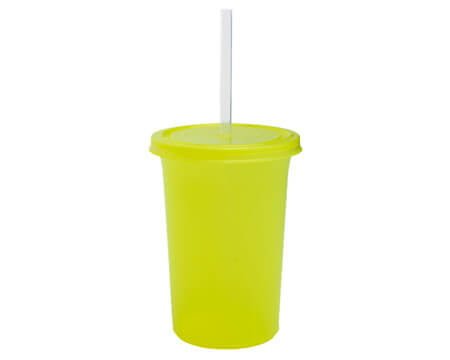 Vaso de plástico libre de BPA, con tapa de presión y popote transparente. La tapa cuenta con un diseño que simula olas. CAP. 470 ml. Medidas: Ø 9.5 x 13 cm