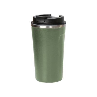 Vaso de acero inoxidable doble pared con tapa de polipropileno, fabricado en materiales de grado alimenticio, mantiene bebidas frías o calientes por un largo tiempo, no usar en microondas. Capacidad de 510 ml. Incluye caja de cartón individual. Medidas: 17x9 cm.