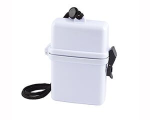 Estuche hermético de plástico, para proteger objetos personales. Ideal para la alberca o la playa. Medidas: 9.4 x 12 x 3.8 cm